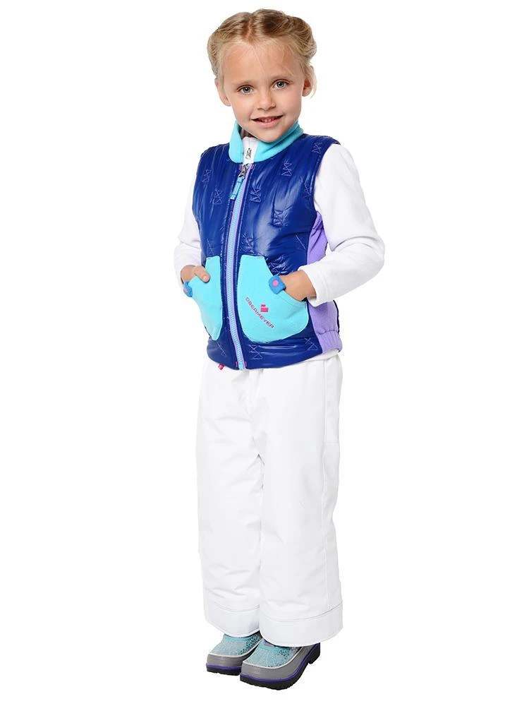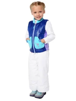 She’ll be warm in the insulated Obermeyer Snuggle Vest.