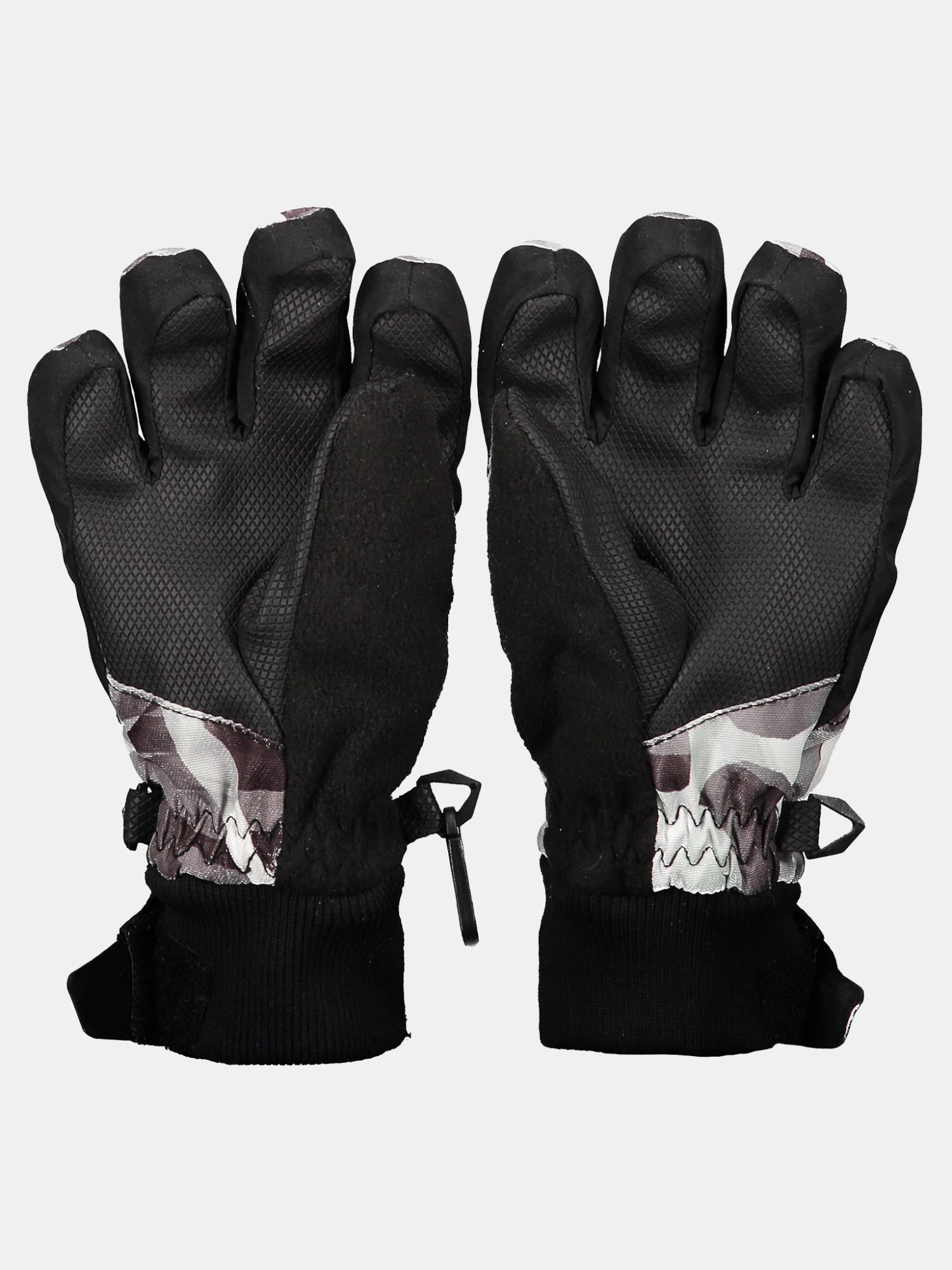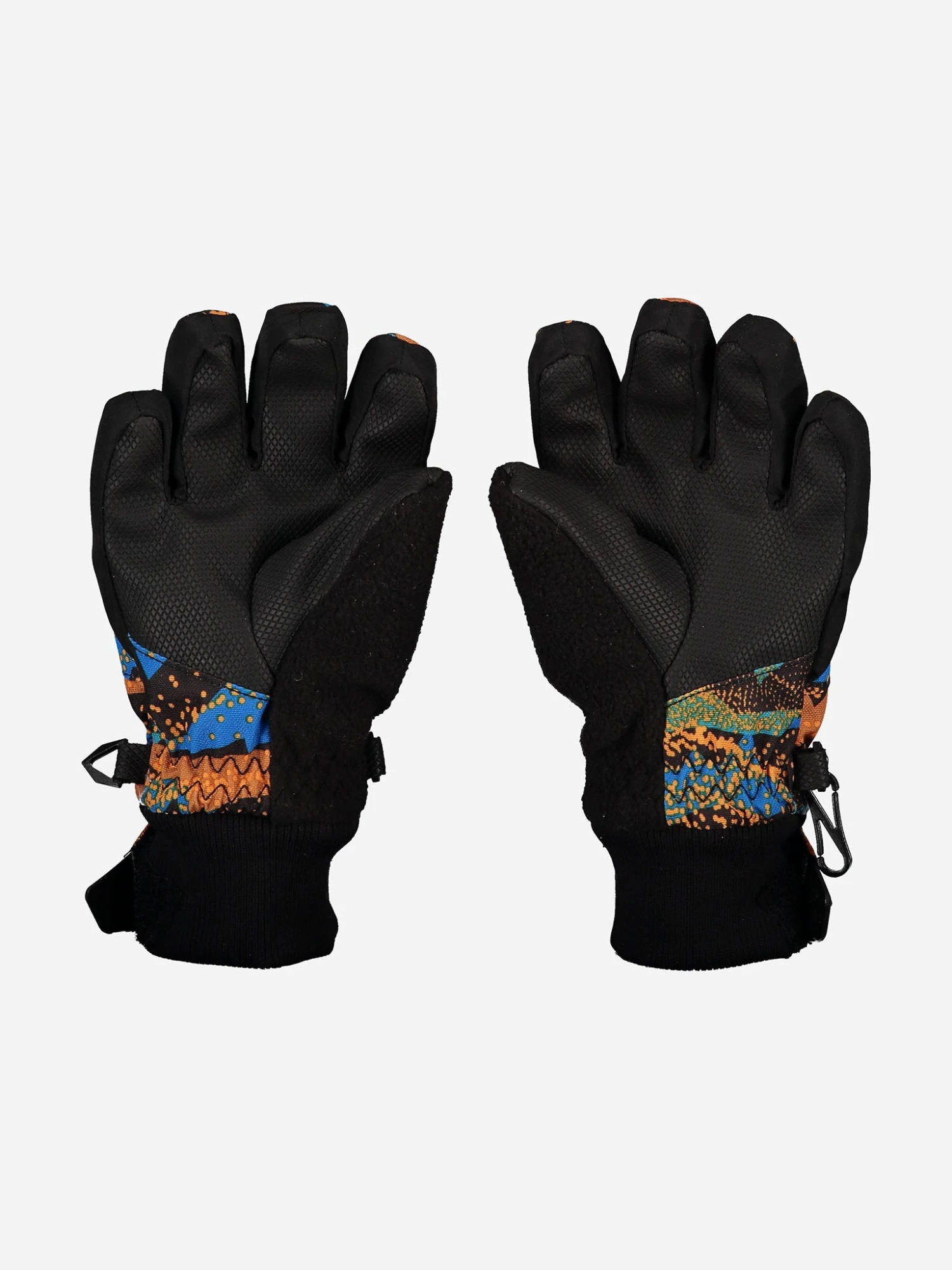 The Obermeyer Little Kids’ Thumbs Up Glove Print has a pre-curved ergonomic fit for a natural, relaxed shape to keep their little hands warm and comfortable.