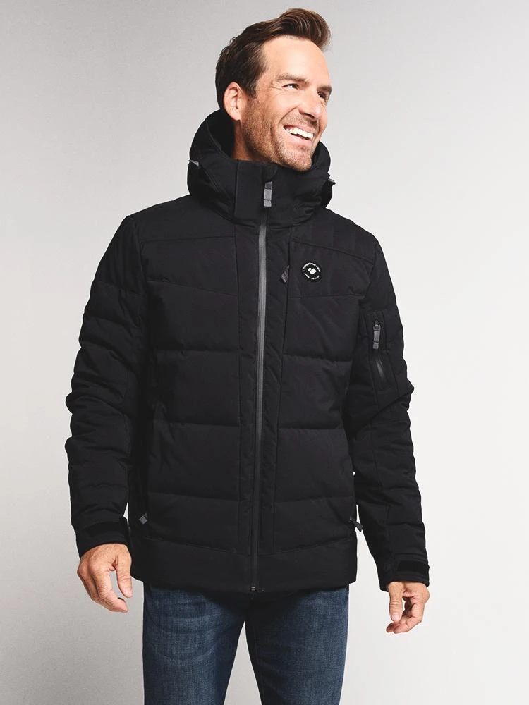 800 Fill Power Goose Down keeps you warm in the toughest of conditions. Lightweight and compressible, the Maxon is an easy traveling companion. A durable 100% polyester plain weave with 15,000mm waterproof/breathable 2-way stretch fabric and AquaGuard zippers are incredibly durable and keep the elements at bay. Adjustable, gusseted cuffs with inner stretch liners, removable hood.