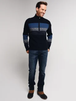 Elegant wool sweater for the more casual activities during your ski trip. Merino wool is soft, breathable and has an active knit for ease of movement. A YKK Metaluxe zipper lends a metallic finish to an already classic design.
