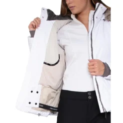 The Obermeyer Tuscany Elite Jacket is an Obermeyer classic that’s been elevated to the next level. Made with HydroBlock Elite fabric that has 4-way stretch for excellent mobility and a 20K waterproof rating to keep you dry. For unbeatable warmth, the Tuscany Elite jacket has 150g of Thermore classic insulation and a fleece-lined collar. Mountain ready features include a removable hood, a powder skirt, stretchy wrist gaiters, and an adjustable hem. It has stunning style with careful attention to details like the removable Arctic Fox Faux Fur, detailed stitching that provides a feminine silhouette for timeless style on the mountain or in the city.