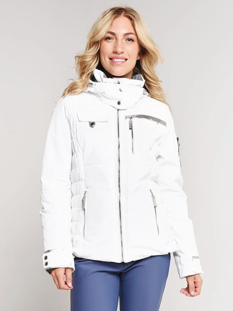 The insulated Obermeyer Hadley jacket features flattering details like ruching on the side to give you a stylish look on the slopes.